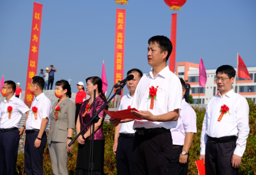 劉朝暉在致辭中首先代表縣委、縣人大、縣政府、縣政協(xié),向夜以繼日奮戰(zhàn)的中國(guó)二冶施工人員、項(xiàng)目指揮部工作人員和承建單位表示衷心感謝!廣大建設(shè)者克服了重重困難,歷經(jīng)了千辛萬苦,全體參與項(xiàng)目建設(shè)的同志們發(fā)揚(yáng)“三牛”精神,吃苦耐勞,攻堅(jiān)克難,奮戰(zhàn)1300多個(gè)日日夜夜,終于建成了一座占地400畝、學(xué)位6000個(gè)的現(xiàn)代化新高中,向全縣人民兌現(xiàn)了莊嚴(yán)承諾,也讓70萬永興人民充分感受到縣委縣政府致力于改善民本民生的堅(jiān)定決心。他強(qiáng)調(diào),優(yōu)質(zhì)教育質(zhì)量的均衡發(fā)展一直是困擾當(dāng)?shù)乜h鄉(xiāng)兩級(jí)教育事業(yè)發(fā)展的一個(gè)難題。今天新校區(qū)的揭牌意味著永興一中即將揚(yáng)帆遠(yuǎn)航,永興一中要以揭牌和開學(xué)為新起點(diǎn),瞄準(zhǔn)高標(biāo)準(zhǔn),高質(zhì)量,高品位目標(biāo),提高教育質(zhì)量,辦出教育品牌,努力把學(xué)校創(chuàng)辦成管理一流,特色鮮明的義務(wù)教育標(biāo)桿學(xué)校。