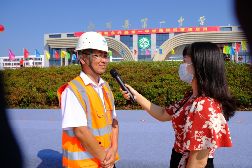 在揭牌儀式后,中國(guó)二冶永興一中項(xiàng)目經(jīng)理王海洋接受了當(dāng)?shù)孛襟w記者的采訪。他指出,中國(guó)二冶項(xiàng)目部面對(duì)工程時(shí)間緊,任務(wù)重,難度大等嚴(yán)峻形勢(shì),在中國(guó)二冶的正確領(lǐng)導(dǎo)下,在相關(guān)職能部門的鼎力支持,通力合作下,克服了疫情及雨天和惡劣天氣帶來的不利影響,充分發(fā)揚(yáng)了“堅(jiān)韌不拔,勇攀高峰”的企業(yè)精神,精心組織,日夜奮戰(zhàn),搶工趕工,為永興一中的如期開學(xué)做了大量卓有成效的工作,彰顯了央企的責(zé)任擔(dān)當(dāng),確保了工程的按期履約,同時(shí)也得到了當(dāng)?shù)乜h委縣政府和當(dāng)?shù)乩习傩盏母叨仍u(píng)價(jià)。