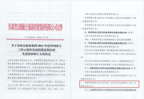 3月14日,由甘肅公航旅集團組織評選的2021年度省列重大工程示范性勞動技能競賽活動評比結果出爐,中國二冶酒嘉項目部從參與評選的多家參建單位中以優異的成績脫穎而出,被評為勞動技能競賽“先進集體”,項目經理楊紹平被授予酒嘉高速勞動技能競賽“優秀項目經理”,梁場負責人郭浩和模板工邢宇民被評為酒嘉高速公路勞動技能競賽“先進個人”。