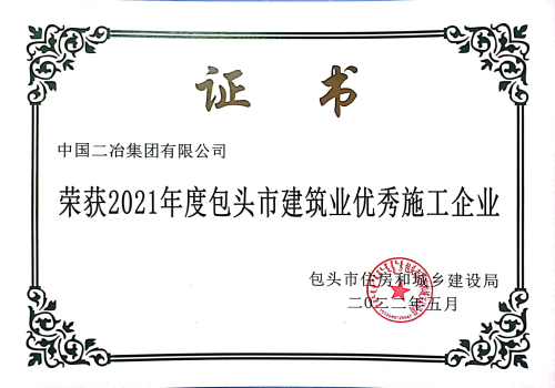5月25日,包頭市住房和城鄉(xiāng)建設(shè)局公布全市34家建筑業(yè)優(yōu)秀施工企業(yè)、119名優(yōu)秀建造師名單。中國二冶被授予“2021年度包頭市建筑業(yè)優(yōu)秀施工企業(yè)”榮譽(yù)稱號(hào)。
