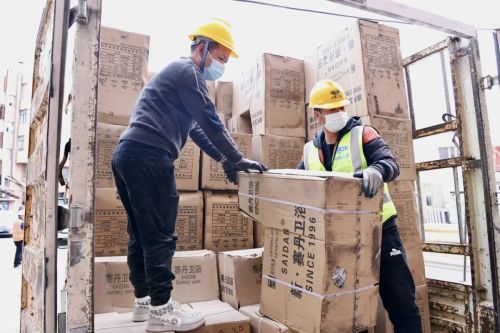 隔離點工作人員搬運硬件設施