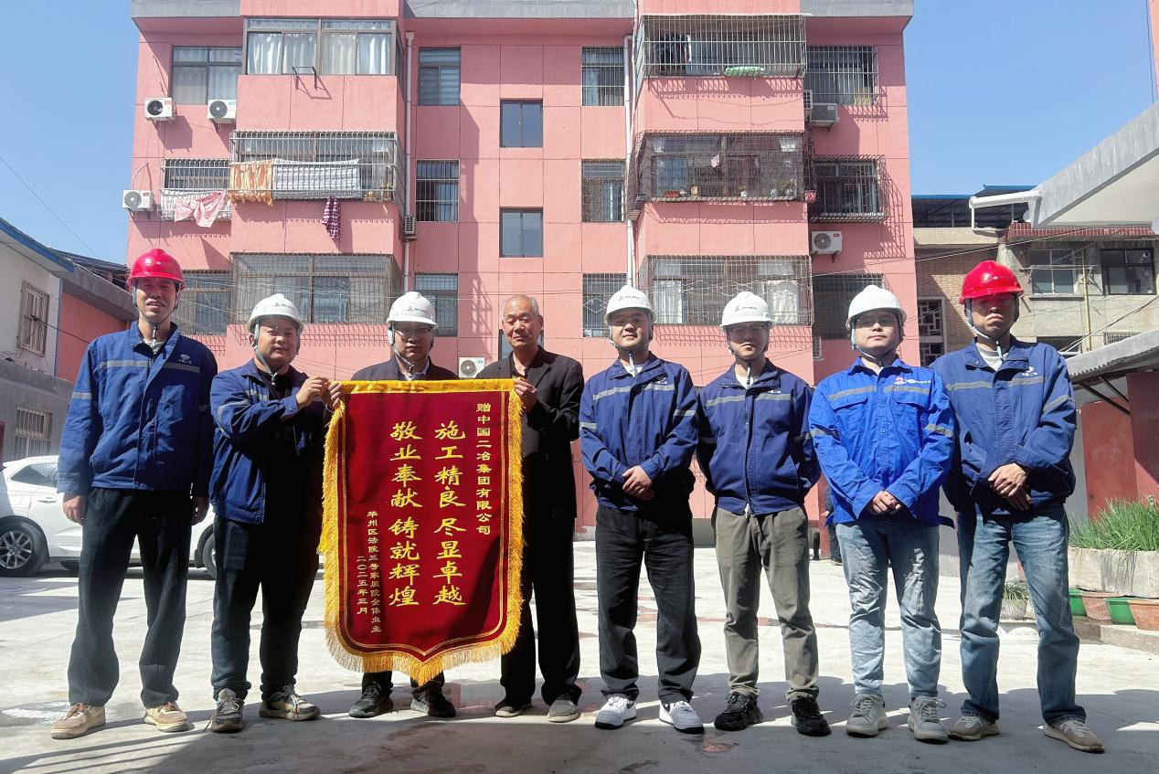近日,中國二冶渭南市華州區(qū)老舊小區(qū)改造EPC總承包項目部收到一份特殊的“禮物”——法院3#院小區(qū)業(yè)主代表將一面印有“施工精良盡顯卓越,敬業(yè)奉獻鑄就輝煌”的錦旗送到項目部,以此表達對項目團隊精湛施工品質(zhì)與貼心服務的高度認可。